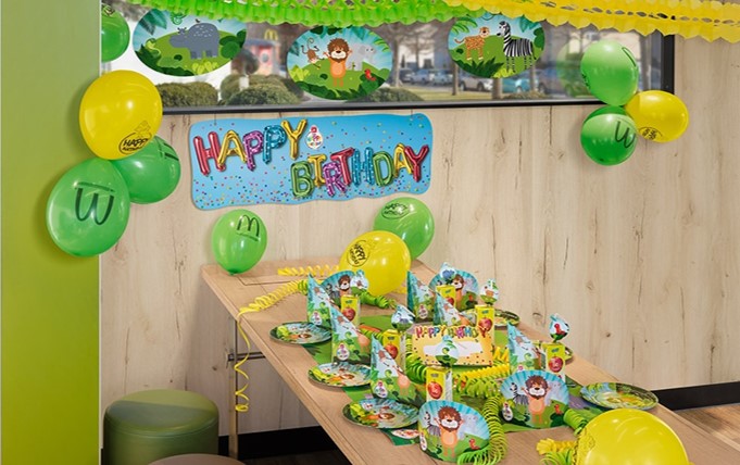 Bei der BIG Party wartet ein unvergesslicher Tag mit exklusiven Highlights. In der Geburtstagsecke mit ausgewählter Mottodekoration kann dein Kind entscheiden, ob es ein leckeres Happy Meal® für jedes Kind geben soll oder ob es zusammen mit seinen Freunden leckere Burger selber bauen will.Als Nachspeise darf selbstverständlich ein Geburtstagskuchen nicht fehlen. Obendrauf gibt es Geschenke für das Geburtstagskind und die Gäste und wenn möglich eine Restauranttour, bei der das Geburtstagskind selbst ein Eis zapfen darf. Die Kinderbetreuung mit lustigen Spielen und jeder Menge Überraschungen rundet den großen Tag ab.